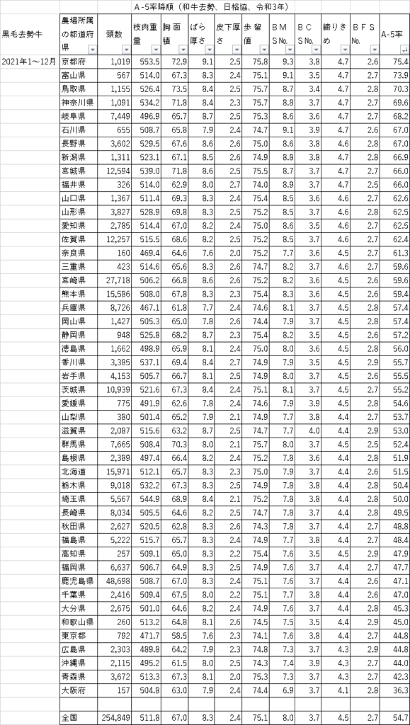 あなたの所属する県の枝肉成績はいかがでしょうか。出荷頭数要因も重要です。