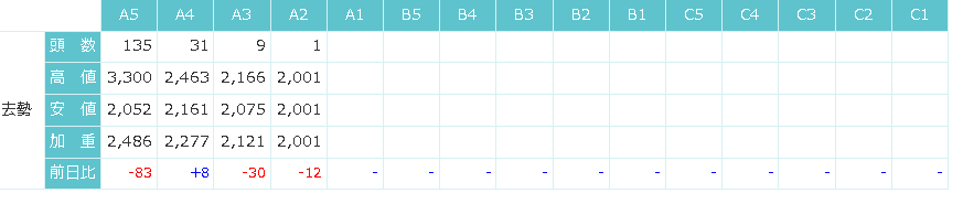 東京食肉市場によると、10/24の相場は小巾安でした。