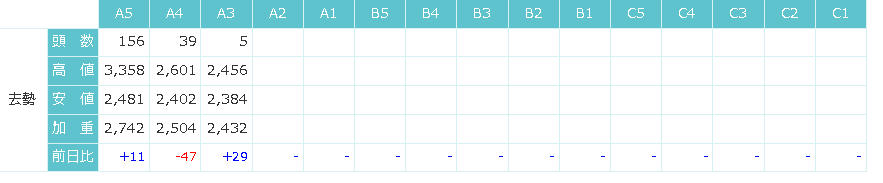 東京食肉市場によると、11/27の相場は保合でした。