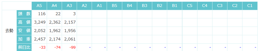 東京食肉市場によると、3/21の相場は小幅安でした。