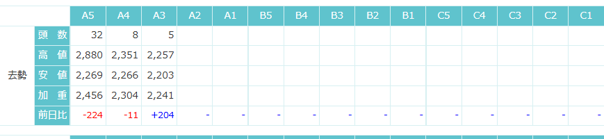 東京食肉市場によると、4/21の相場はまちまちでした。