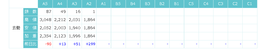 東京食肉市場によると、7/3の相場はまちまちでした。