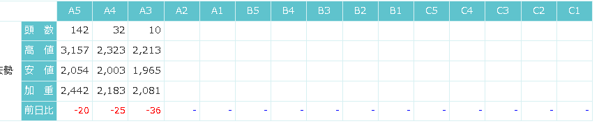 東京食肉市場によると、7/31の相場は保合でした。