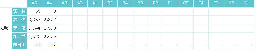東京食肉市場によると、9/1の相場はまちまちでした。