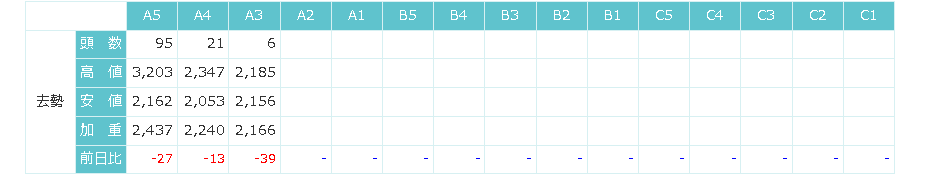 東京食肉市場によると、1/23の相場は保合でした。