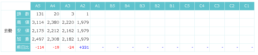東京食肉市場によると、2/5の相場は弱保合でした。