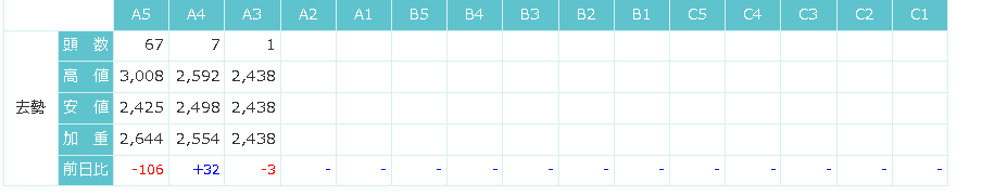 東京食肉市場によると、4/6の相場は弱保合でした。
