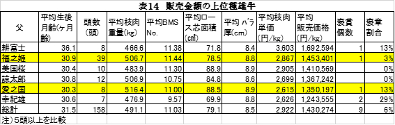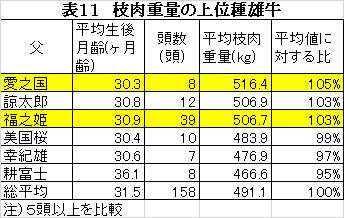 小さく産んで大きく育てる「愛之国」が№1、去勢で枝重トップの「福之姫」が№3と続いていました。