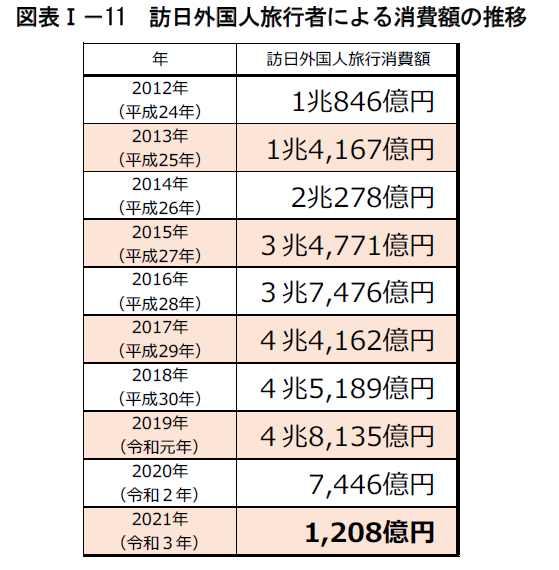インバウンド消費額が1桁少なくなっている。