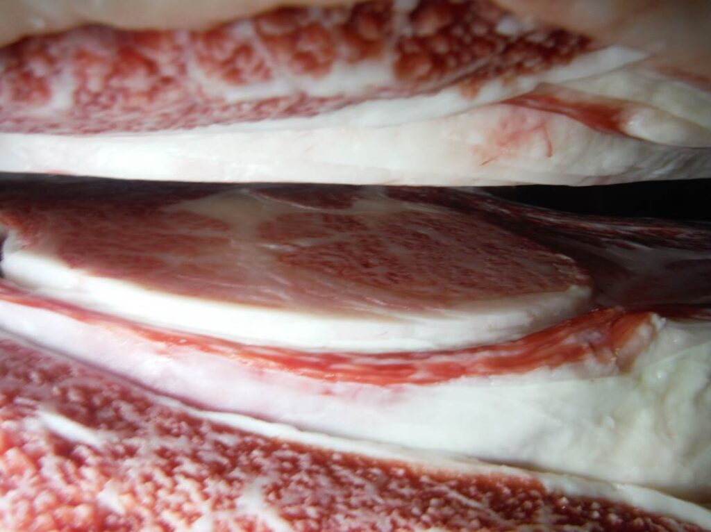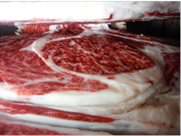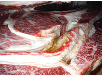 しまりの悪い肉とは、外観が「カット表面が波打ったようにブヨブヨと軟質な印象を受ける肉」と評価されるものです。枝肉セリ市場で買参人が着目・評価する項目の一つです。通常の変化で、pHや品温の低下が適切になされると肉ジマリは良好です。
