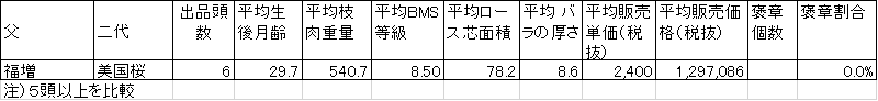 頭数が少ないですが、BMS、ロース芯面積なら美国桜、枝重なら隆之国との相性が良さそうです。