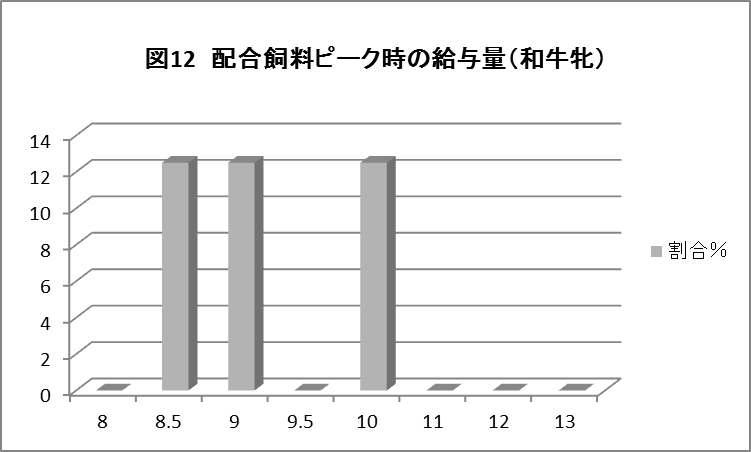 配合飼料のピーク時の量は、少なすぎるとサシを入れるのに不十分ではなく、多すぎても中期後期で中ダルミを起こさない程度に設定されるでしょう。