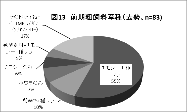去勢も牝も圧倒的にチモシー+稲ワラが多い結果となりました。