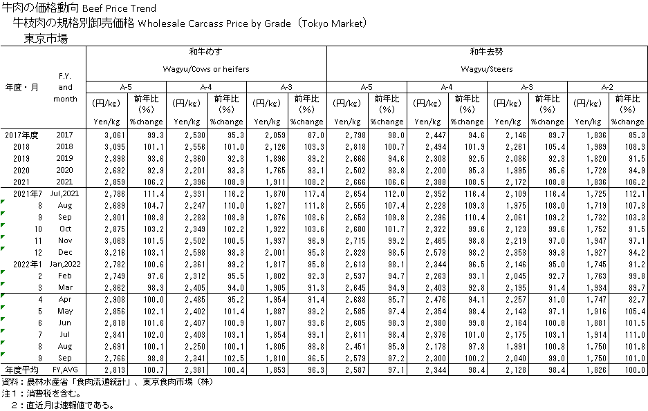 枝肉相場・食肉情勢
