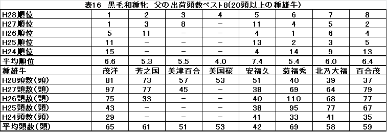 ○安福久、北乃大福および菊福秀が上位で安定していました。