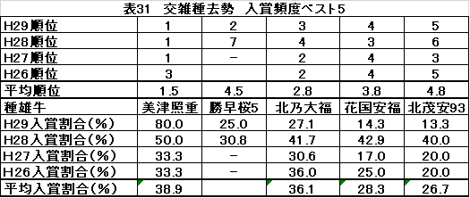 (4)血統別の入賞状況(表31、昨年)