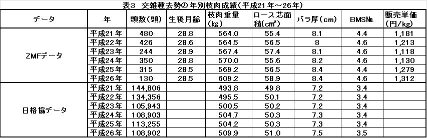 (3)交雑種去勢(表3)