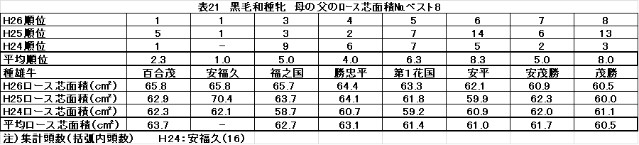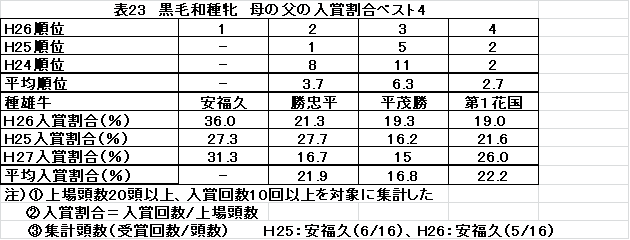 ○安福久、北乃大福および北平安は去勢と共通の上位でした。