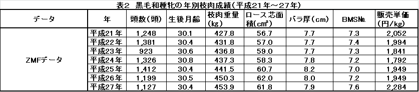 (2)黒毛和種牝(ZMFのみ、表2)