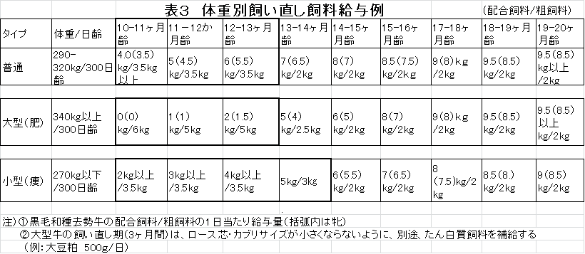 (3)デンプンの多い高カロリー飼料の給与割合を低くしてください。肥育前期でのデンプン多給は,