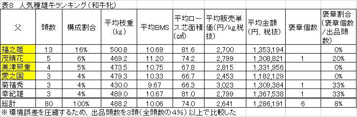 (1)人気種雄牛ランキング(表8)
