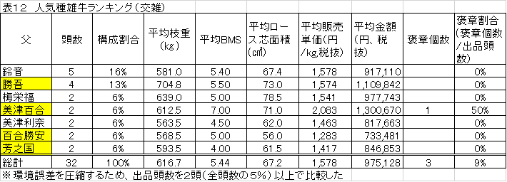 (1)人気種雄牛ランキング(表12)