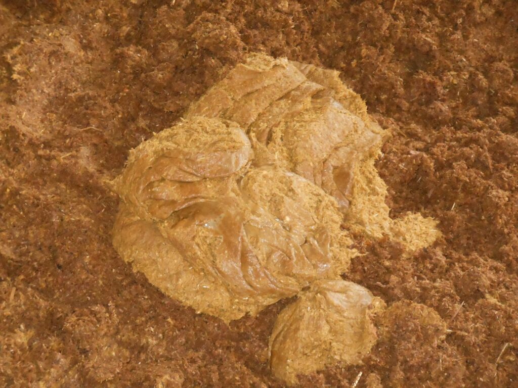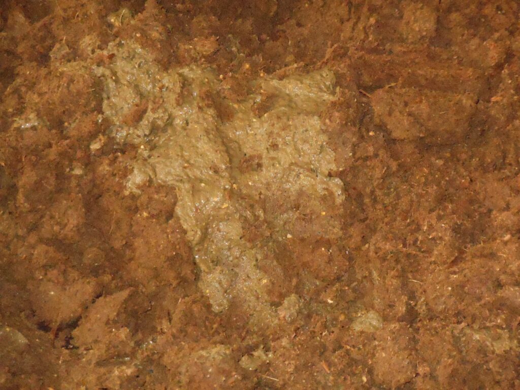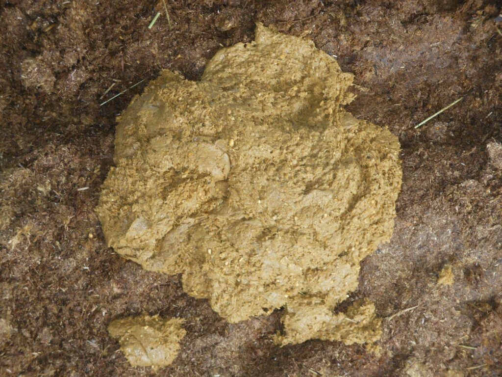 - 硬さは、水分の関係で、消化管通過速度が下痢などで高速になると、腸管での水分吸収が少なくなるので、水様便となります。普通は、やや(2~3㎝)盛り上がっています。乳牛と比べると、肉牛は硬めです。肥育前期に比べると肥育後期は、粗飼料比率が低くなるため、柔らかめとなります。